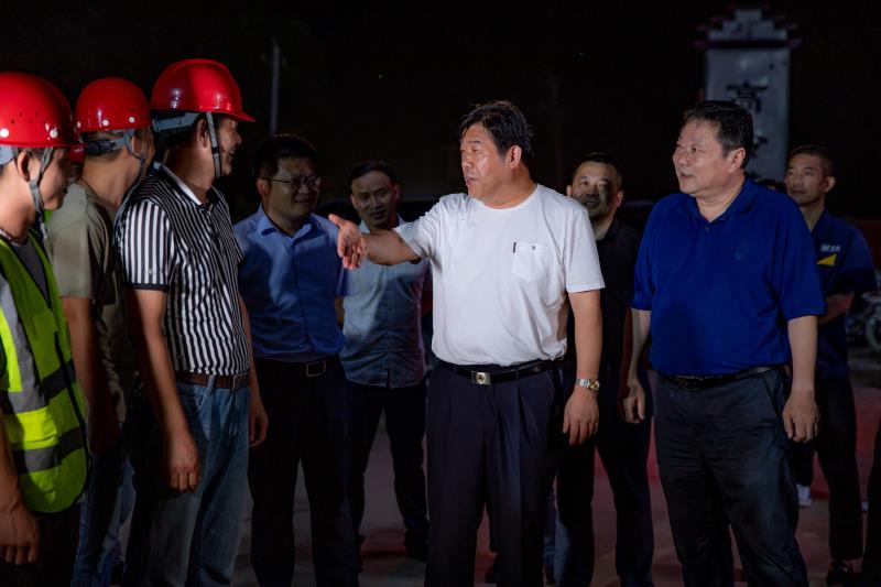夜幕下的高岭村长学院施工现场,灯火通明,工人们仍在紧张施工当中,为抢抓工期加班加点,全力冲刺。徐耀纯一行为工人们送去了食物、水果等慰问品,并与工人们亲切交谈,对辛勤工作的工人们表示慰问,叮嘱大家一定要注意夜间施工安全,克服重重困难,合理的调配人员、车辆,确保以最优的质量,最快的速度推进项目。